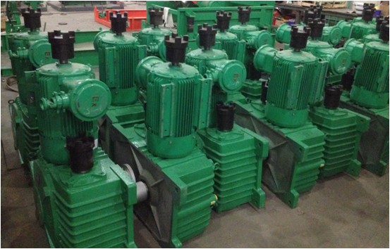 b) 蝸輪蝸桿減速機與防爆電機組合,適宜在與野外惡劣條件下工作。