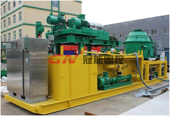 2、排出的干渣經過另一臺螺旋輸送機輸送至收集處,液體流向離心機進行第二步的精細固液分離處理。分離干凈的泥漿儲存起來準備鉆機繼續回用。