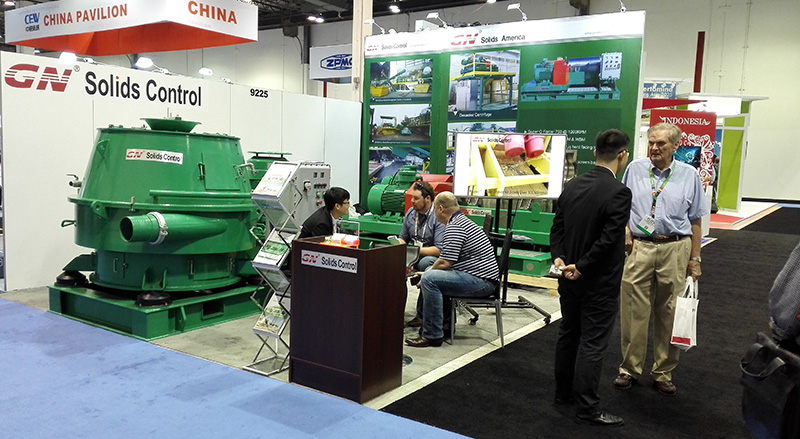 本次展會冠能固控主要展示了廢漿處理設備,日益嚴格的環保要求,對鉆井廢棄泥漿的處理的要求也越來越高,針對廢漿處理,冠能固控研發生產的鉆屑甩干機及廢棄泥漿處理離心機可以滿足客戶的處理要求,在國內外市場上得到了客戶的一致好評。